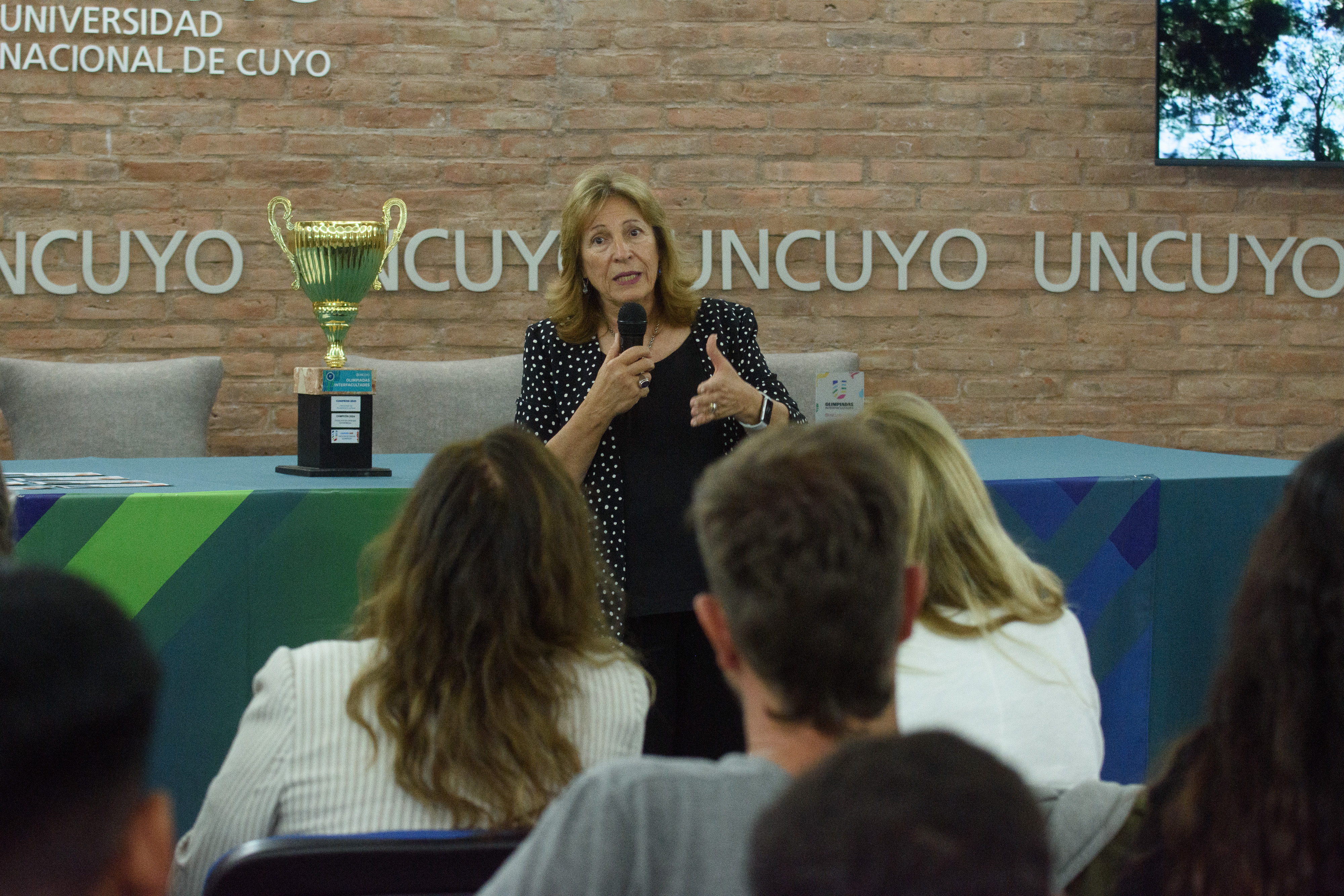 La rectora Esther Sanchez estuvo presente en la premiación, agradeció la oportunidad de poder celebrar un año más las Olimpiadas Interfacultades y destacó la importancia de la formación integral de los estudiantes a través de esta iniciativa: "Agradezco a todos los jóvenes que participaron del encuentro y a la Secretaría de Bienestar que se empeñó desde el comienzo con su concreción, en esto que es que los estudiantes deben disfrutar el proceso de su formación, de su formación integral, y esta es una de las maneras de disfrutar su paso por la UNCUYO".