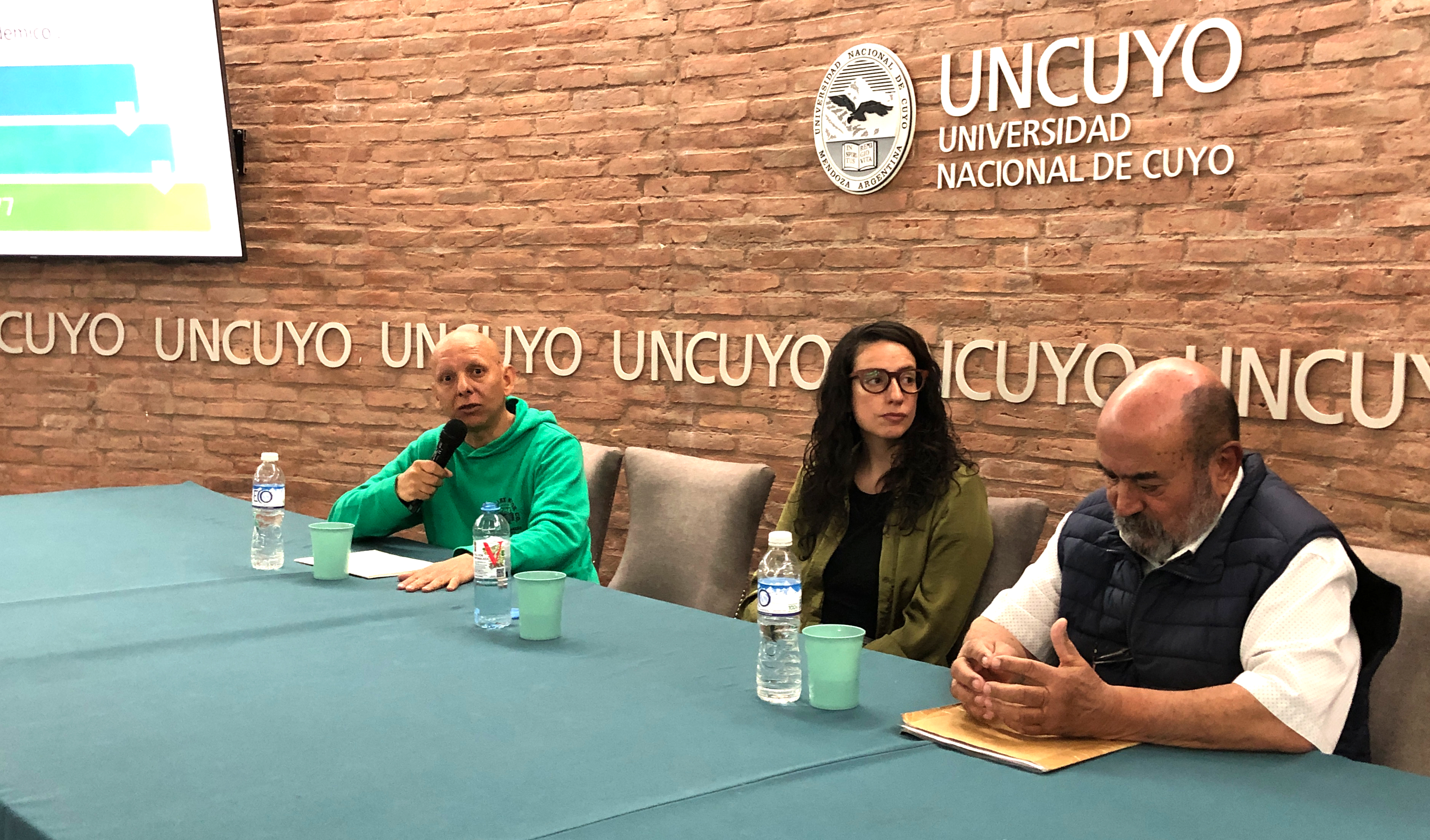 Alejandro Paredes, del Centro de Estudios Transandinos y Latinoamericanos de la UNCUYO, Mariana Páez, coordinadora de la Biblioteca Mauricio López, y Ricardo Rojo, integrante de la misma biblioteca, expusieron acerca de la propuesta pedagógica y extensionista de Mauricio A. López.