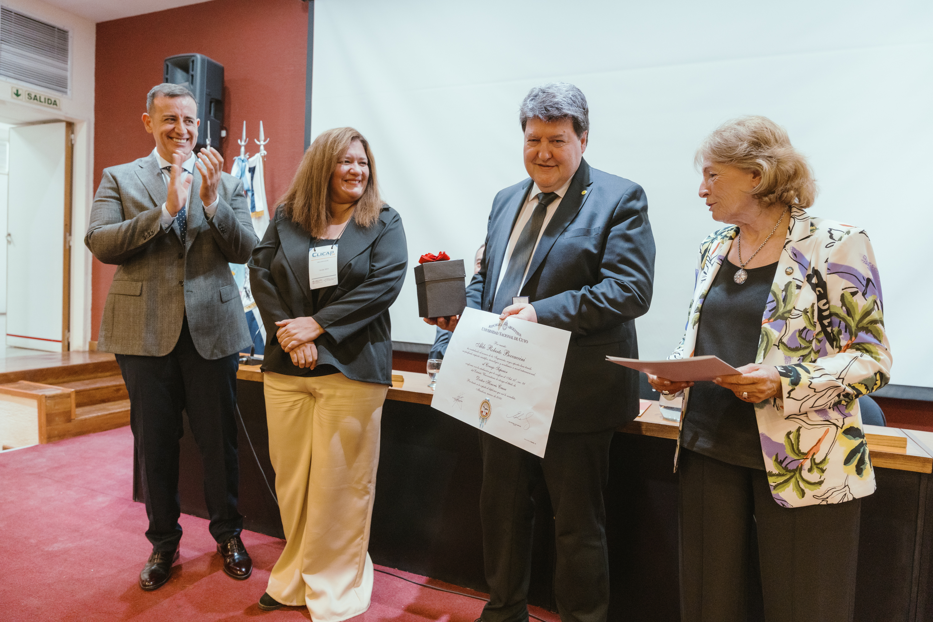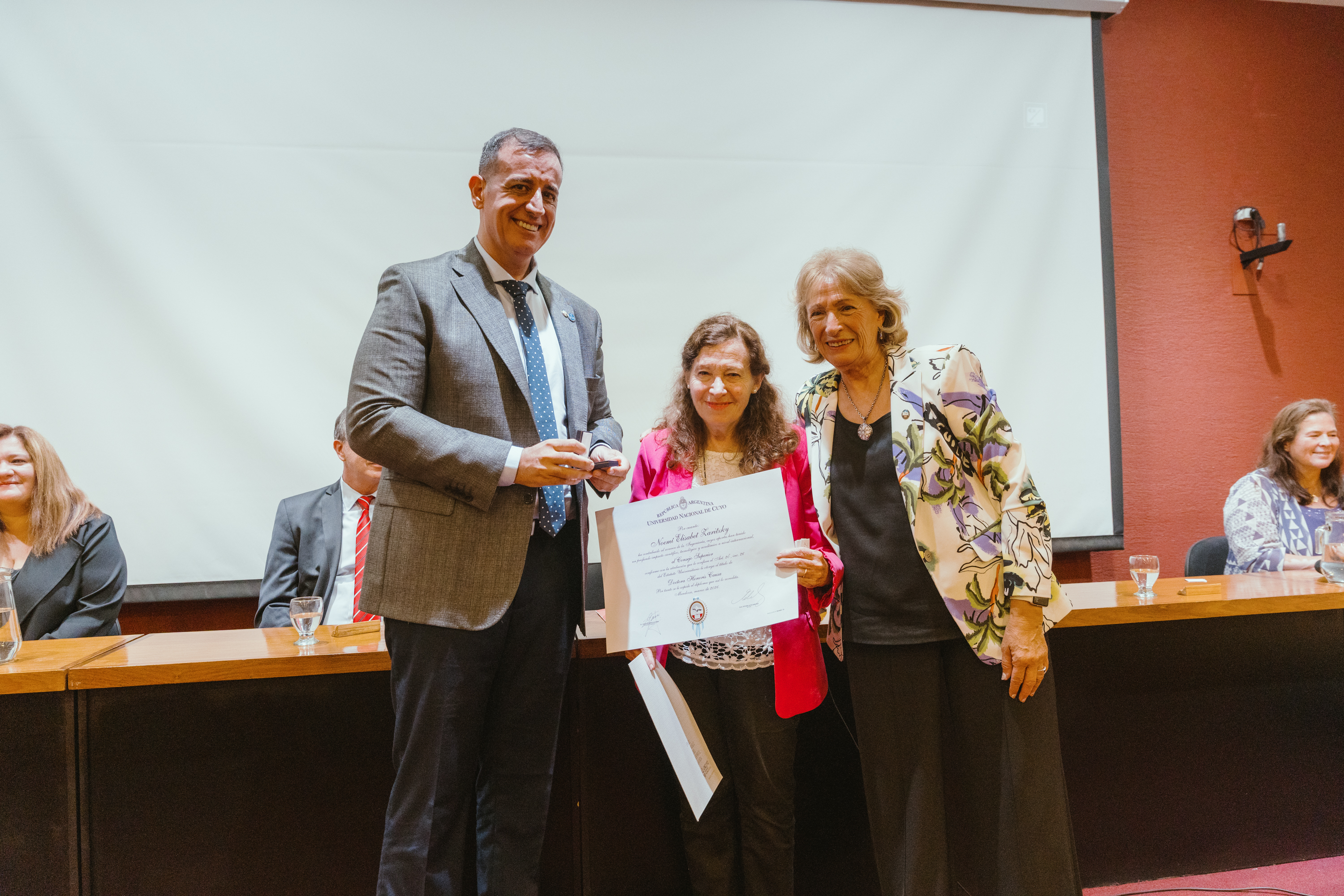 El Consejo Superior de la UNCUYO, por pedido de la Facultad de Ciencias Aplicadas a la Industria, entregó el reconocimiento Doctor Honoris Causa con mérito académico a la doctora en Ciencias Químicas Noemí Zaritzky y al doctor e ingeniero nuclear Aldo Boccaccini.