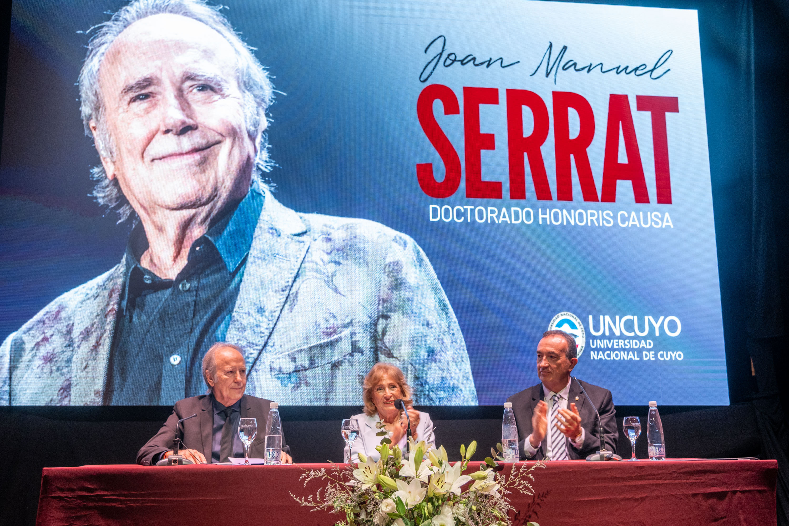 Ante una sala Roja de la Nave UNCUYO repleta, Joan Manuel Serrat recibió el Doctorado Honoris Causa. El músico catalán obtuvo el mayor reconocimiento que otorga la Universidad Nacional de Cuyo (UNCUYO) con mención especial al mérito político-cultural. Fue por pedido de las facultades de Ciencias Agrarias (FCA) y de Ciencias Económicas (FCE), que impulsaron el reconocimiento en el marco de la Maestría en Responsabilidad Social y Desarrollo Sostenible, que ambas gestionan.
