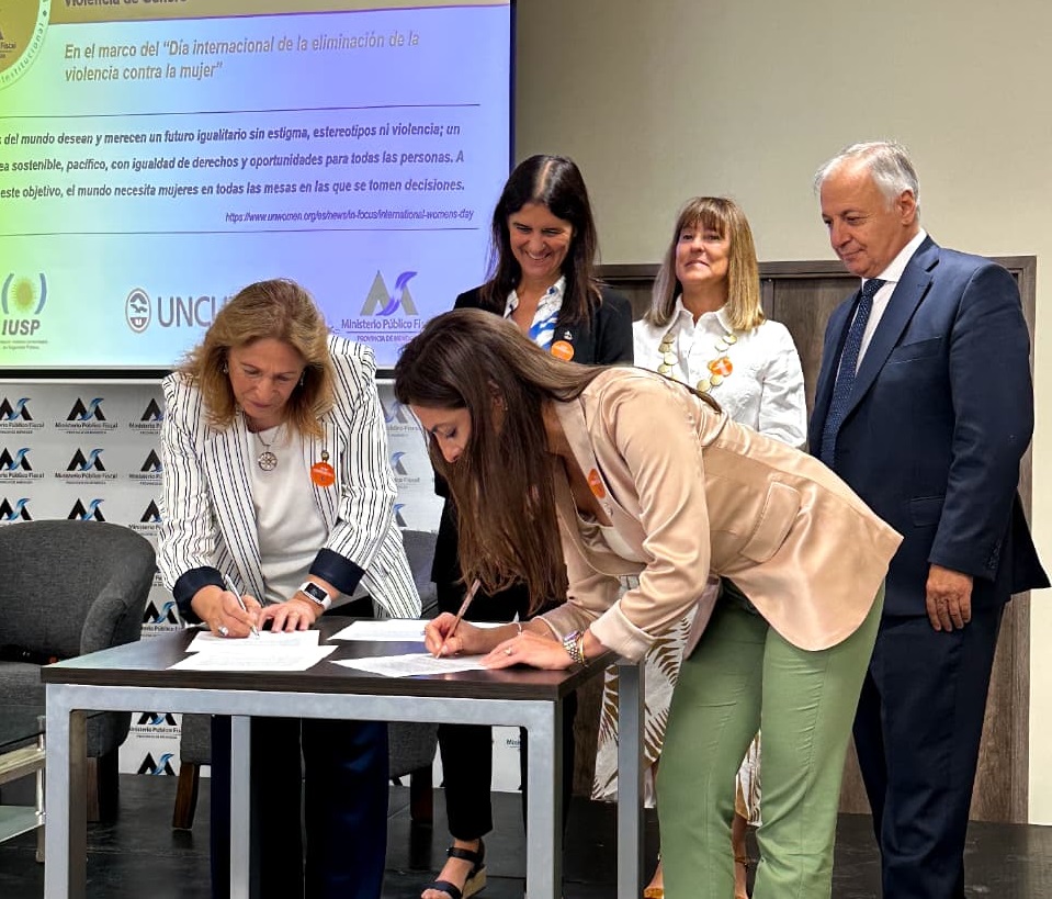 El acto contó con la presencia del la rectora de la UNCUYO, Esther Sanchez, el Procurador General del Ministerio Público Fiscal (MPF), Alejandro Gullé, las ministras de la Suprema Corte de Justicia, Norma Llatser y María Teresa Day y Cecilia Saint-André, Defensora General. También firmaron este documento, Mercedes Rus, Ministra de Seguridad y Justicia de Mendoza, y la directora de capacitación del Instituto Universitario de Seguridad Pública (IUSP) Paula Vetrugno. En tanto, que la vicegobernadora Hebe Casado compartió su punto de vista a través de un video.