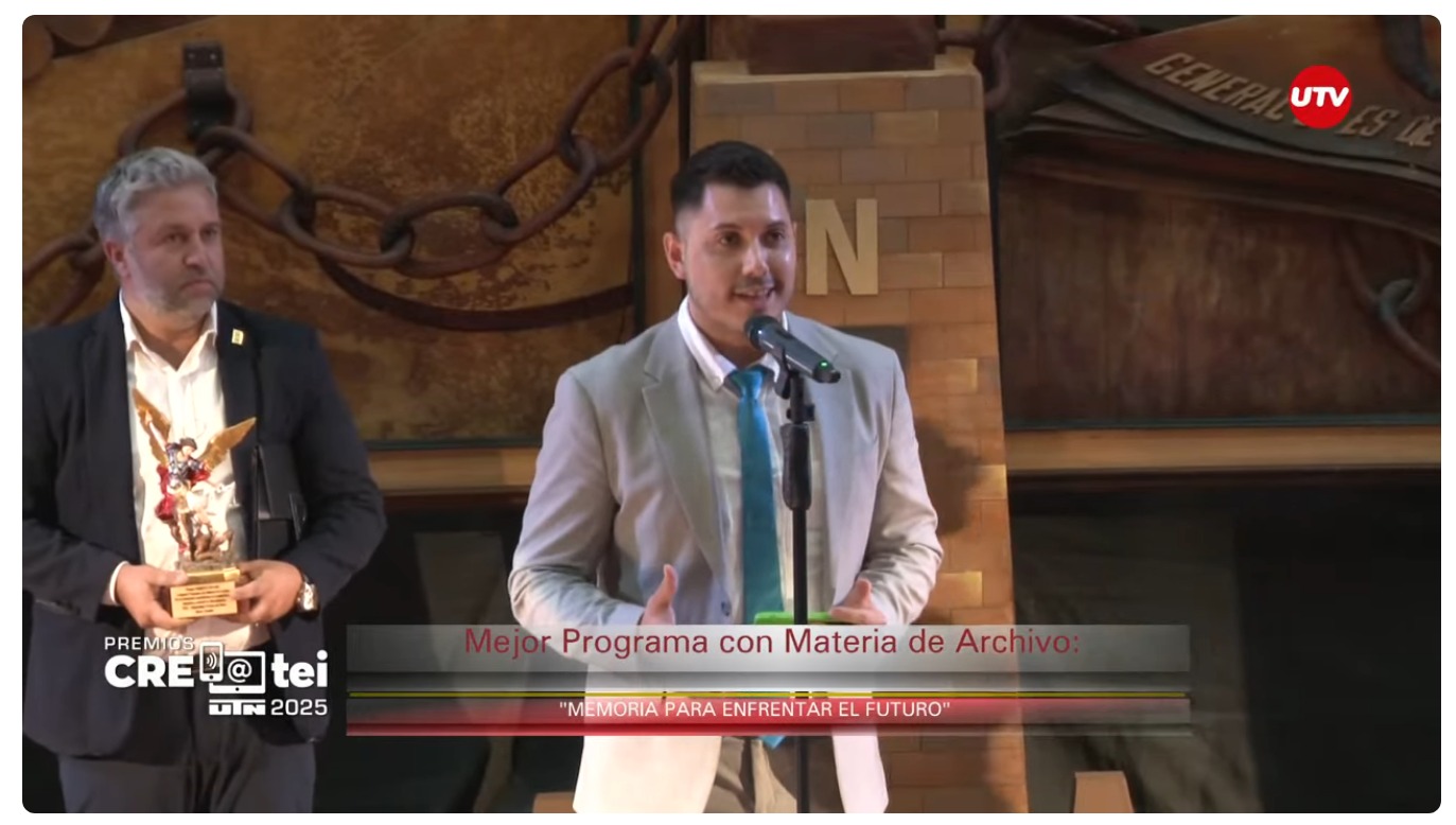 Mauricio González, coordinador de medios de la UNCUYO, en la transmisión de la entrega de los Premios Cre@tei.