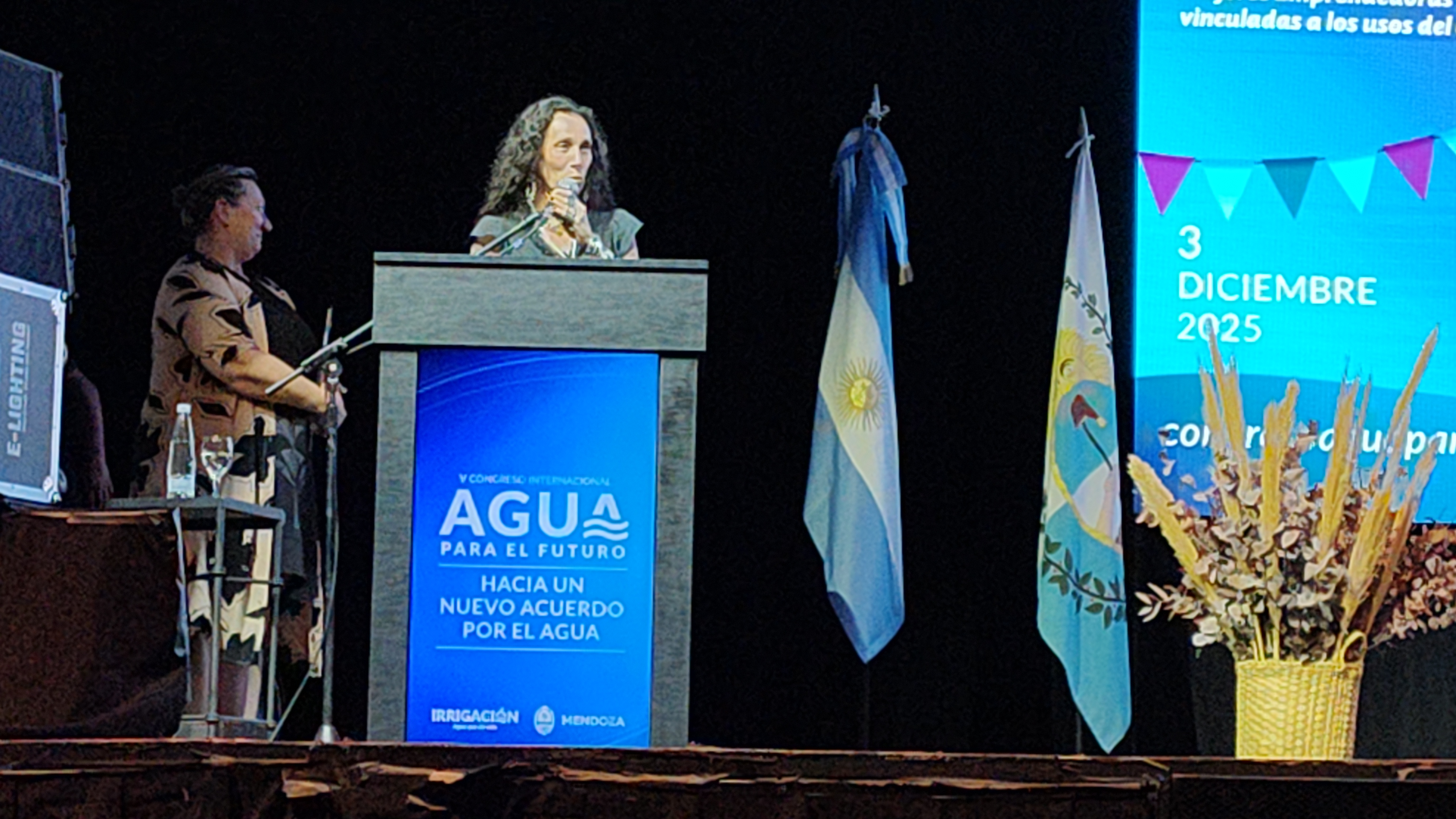 Sanchez reflexionó sobre el rol de las mujeres en la gestión del recurso hídrico, señalando que desde las primeras comunidades huarpes hasta nuestros días "las mujeres han tenido una extraordinaria capacidad para gestionar el agua de un modo racional".