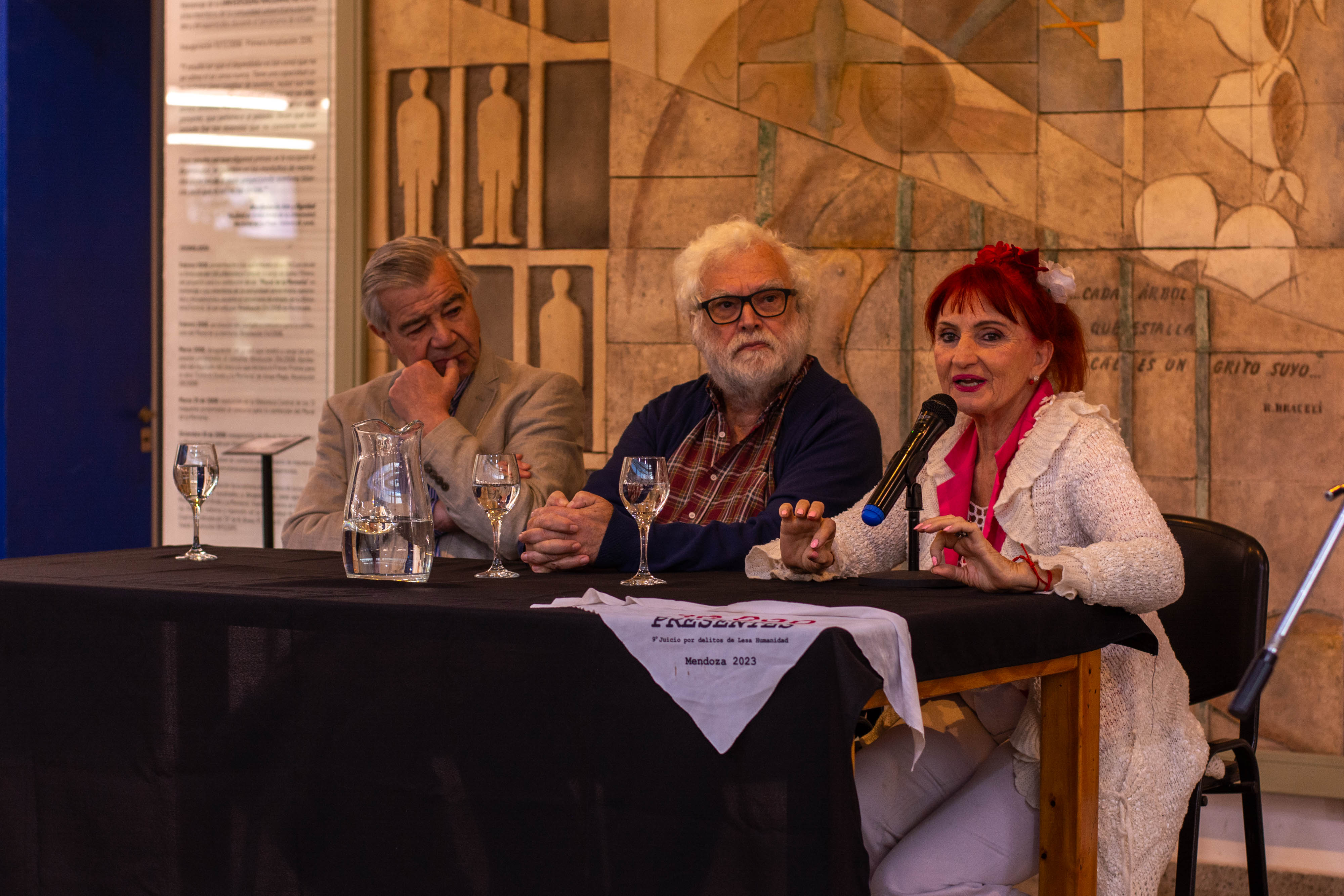 El sitio elegido por la UNCUYO para honrar y preservar la memoria de esos años fue el hall de la Biblioteca Central, de cara al mural que realizó la artista Vivian Magis. En esa obra —que se inauguró en 2008— están plasmados los nombres de estudiantes, docentes y personal de apoyo de la institución que fueron desaparecidos durante el terrorismo de Estado. También se registra la expulsión de 219 miembros de la comunidad universitaria y la desaparición forzada de 63 personas que pertenecían a la institución, lo cual da cuenta del profundo impacto que tuvo el accionar represivo sobre el sistema universitario nacional.