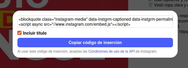 Es común que las redes sociales permitan compartir sus contenidos en un formato que permite ser incluído en sitios.